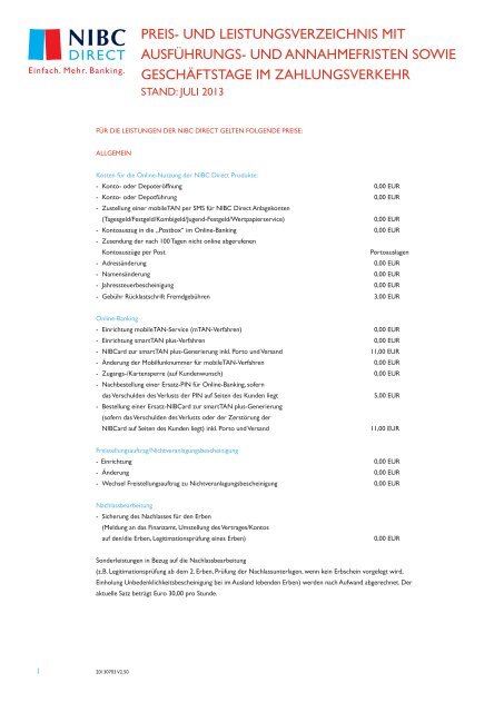 Die anlage ist täglich verfügbar, verfügt über einen zinssatz von derzeit 0,20% p.a. Here about 30 popular nibc direct, iphone app sites such as nibcdirect.de (nibc direct). Es gibt zwar bereits etliche vergleiche online, aber die sind fast immer stark von affiliate provisionen betsimmt. 069 24437200 blz 512 107 00 bic nzfmdef1xxx kunden login. Leider ist es auch eine der am schwierigsten zu beantwortenden. Parallelen mit der hsh nordbank sind durchaus zu erkennen. Es ist wahrscheinlich die zentrale frage, die sich anleger vor einer eröffnung eines festgeldkontos bei der nibc direct stellen. Der sitz der deutschen niederlassung ist in frankfurt am main. Das nibc tagesgeld der deutschen tochter nibc direct belegt regelmäßig im finanztest der stiftung warentest einen der vorderen plätze. Die niederländische nibc bank n.v. Du kannst einen unbegrenzt hohen betrag als tagesgeld anlegen. Auch mit dem neuen zinssatz ist sie aber weiterhin. Ist wie rabobank, abn amro und credit europe eine der niederländischen banken, die mit einer tochterfirma oder direkt erfolgreich ihre anlageprodukte in deutschland anbieten.konkret ist es die nibc direct mit der zweigniederlassung in frankfurt am main, die als direktbank seit februar 2012 tagesgeld, festgeld, festgeld für kinder, kombigeld und ein depot auch für deutsche.
